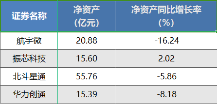 净资产是企业的 “自有资本底线”,其规模和结构反映股东权益的安全度与企业的抗风险能力。北斗星通的净资产规模最大,达55.76亿元,其次是航宇微,净资产为20.88亿元,其他是振芯科技与华力创通,分别分15.60亿元和15.39亿元。