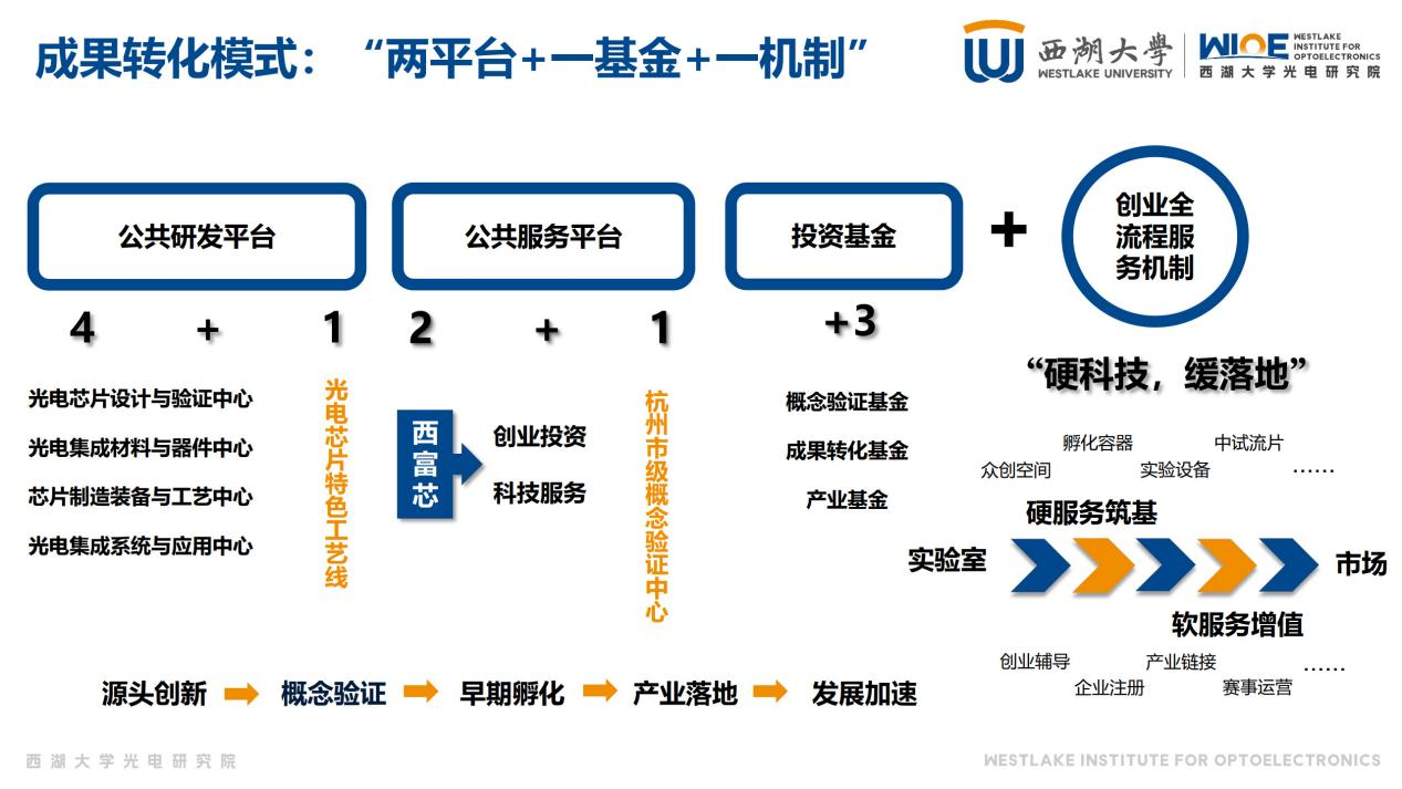 值得一提的是,西湖大学光电研究院形成的“两平台+一基金+一机制”科创服务体系,构建了“源头创新—概念验证—早期孵化—产业落地—发展加速”的服务生态,在优质成果走向市场的过程中发挥了重要作用。