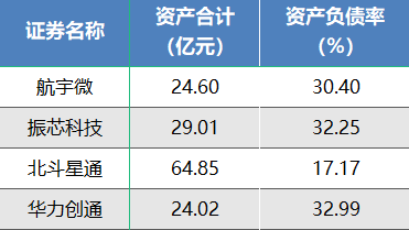 从资产负债率来看,4家公司的资产负债率均低于40%,负债水平较低。其中,除北斗星通为17.17%以外,其他几家公司基本相当,华为创通32.99%,振芯科32.25%,航宇微30.40%。国内导航芯片资产合计不高,但负债率也低,整体相对稳健。