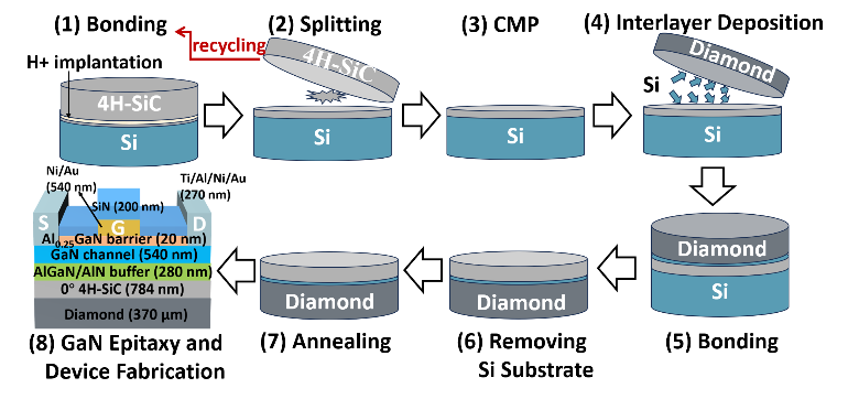 3.中国科学院在基于4H-SiC/Diamond复合衬底GaN HEMT异质集成方面取得重要进展;