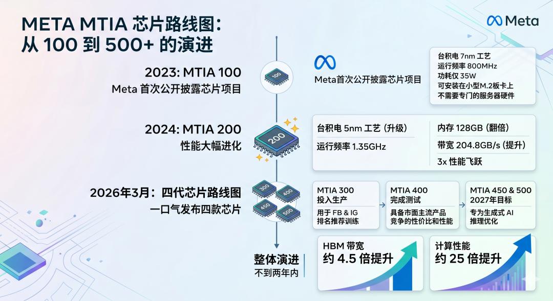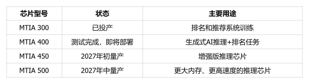 到了2026年3月,Meta一口气发布了四款新芯片的路线图。