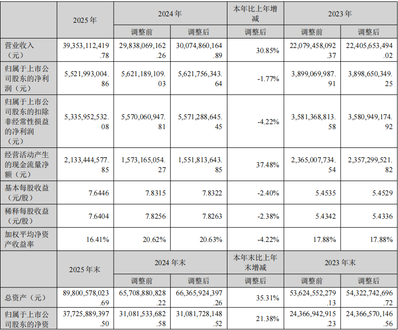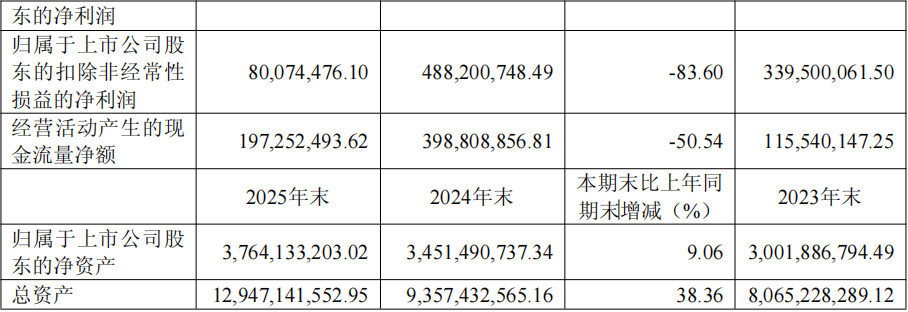 截至2025年12月31日,公司总资产为898.01亿元,较年初增长35.31%;归属于上市公司股东的所有者权益为377.26亿元,较年初增长21.38%。