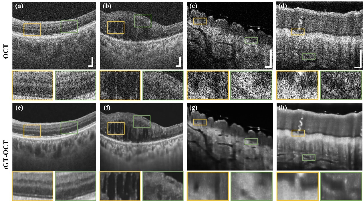 光学相干断层成像(Optical Coherence Tomography, OCT)作为一种非侵入、高分辨率的三维成像技术,已广泛应用于眼科、心血管、皮肤等医学临床领域。然而,受限于相干成像固有散斑等噪声干扰、生物组织复杂结构及三维图像处理等挑战,OCT在真实临床环境中应用仍面临诸多挑战。针对这一系列难题,电子科技大学光电科学与工程学院光电子器件与应用技术团队(负责人:刘永教授)医用光学课题组持续开展创新研究,围绕OCT三维成像及深度学习处理与临床转化应用取得了多项重要成果,相关研究成果近期连续发表于IEEE国际医学影像领域顶级期刊IEEE Transactions on Medical Imaging (2025年IF=9.8)。该系列工作中,电子科技大学均为唯一通讯单位,团队博士生吴壬熊、硕士生覃小洋和裴绍雨等为第一作者,倪光明副教授为通讯作者。