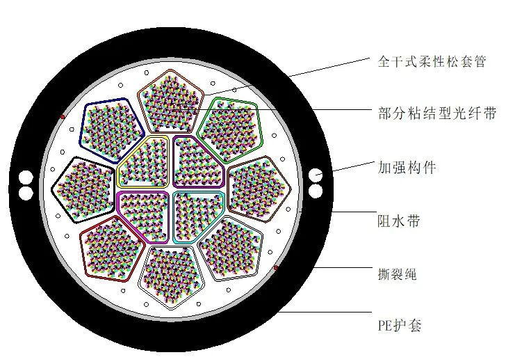 极致性能:最大容量864芯,纤芯密度达11.9芯/mm²,外径不足10mm,重量仅为常规光缆的30%,大幅降低施工与运维成本。