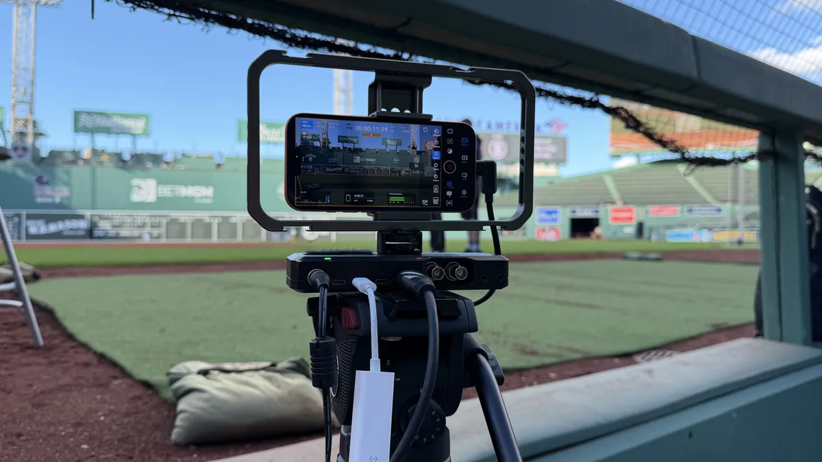 在波士顿红袜队对阵底特律老虎队的比赛中,制作团队首次调用了刚刚发布一周的四部 iPhone 17 Pro 系列手机(三部 Pro,一部 Pro Max),将其作为正式的广播级摄像机投入使用。