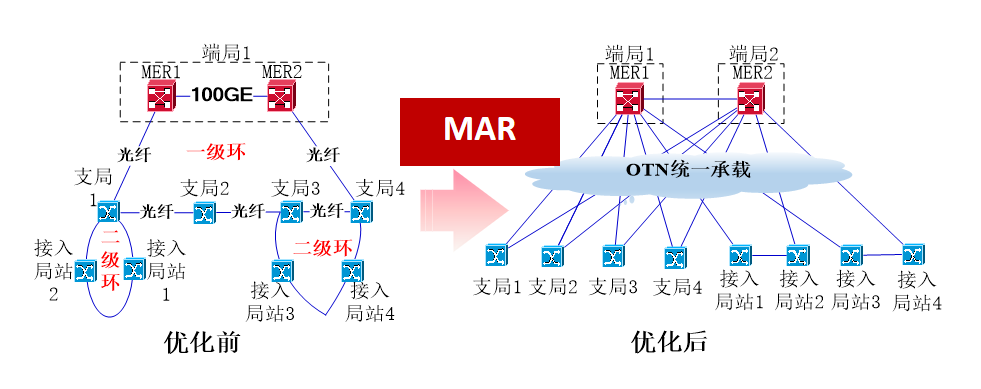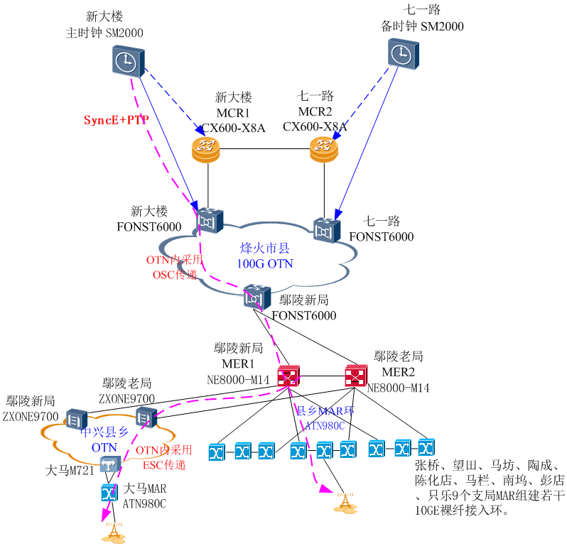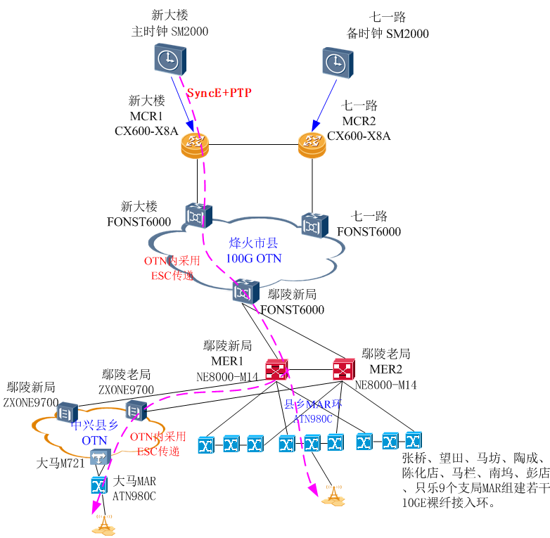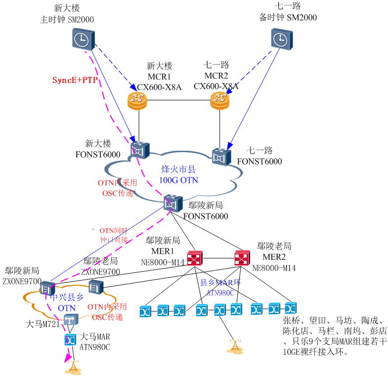 传递路径:市县OTN↔县乡OTN ↔智能城域网(MCR-MER-MAR)↔基站。
