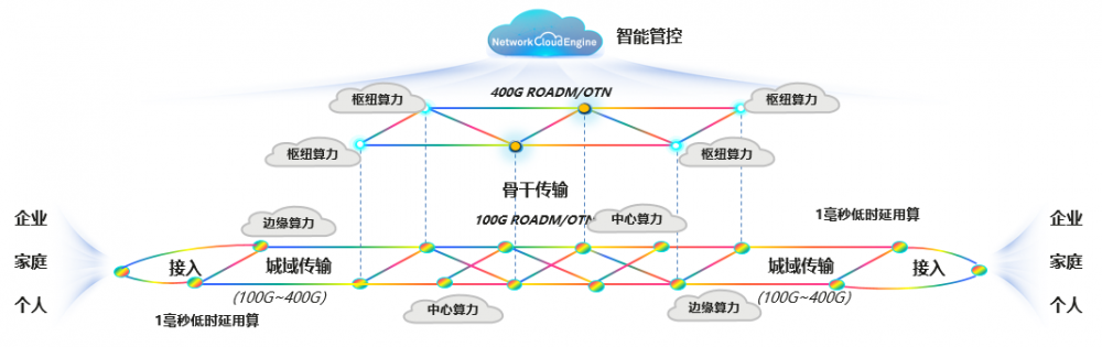 一张底座:省市县乡一体化Mesh化全光网络,光层一跳直达DC/核心网。