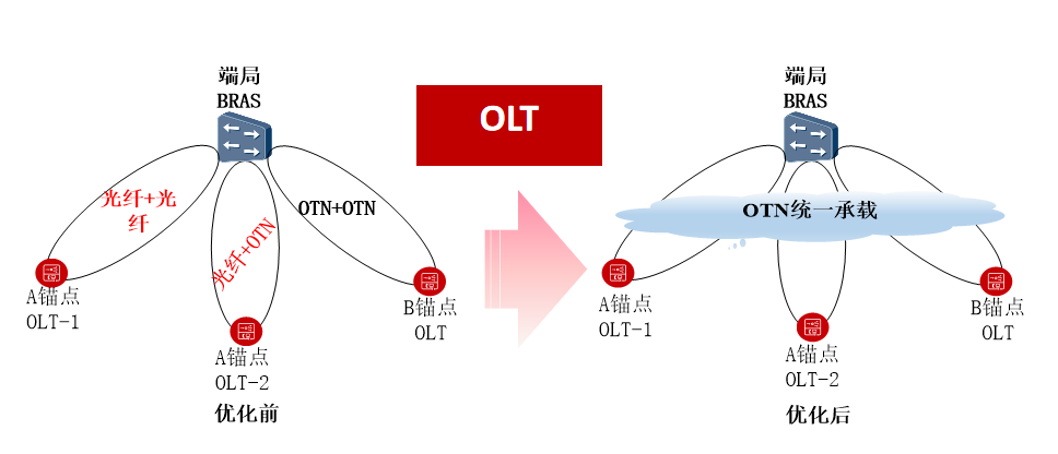 宽带网:OLT 上行由“光纤+OTN”混合调整为“OTN+OTN”双活,链路可用率提升至99.99%。