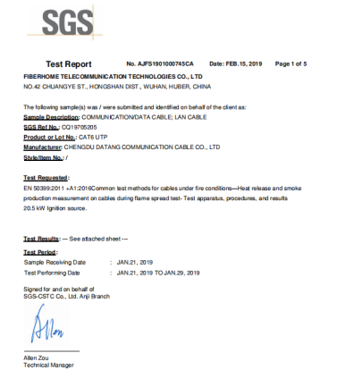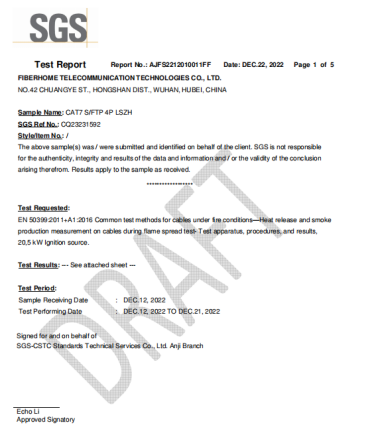 关键性能卓越:我们的产品不仅阻燃性能出众,更同时保证了优异的传输性能(如衰减、回波损耗等),确保安全与高效兼得。