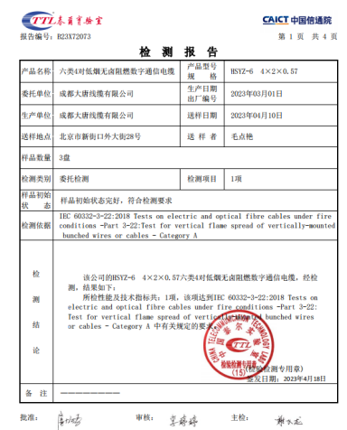 在智慧建筑与数字枢纽高度发达的今天,纵横交错的通信线缆如同建筑的“神经网络”。然而,在享受便捷通信的同时,您是否曾想过,在意外发生时,这些线缆是成为安全的“守护者”,还是灾难的“加速器”?传统PVC线缆在燃烧时释放的浓烟与毒气,往往是火灾中致命的主要原因。成都大唐线缆有限公司(以下简称成都大唐)深谙此道,致力于将每一根线缆都打造为可靠的安全屏障,推出全面符合国内/国际标准的高阻燃数字缆、同轴缆及光缆系列,为您的关键连接保驾护航。