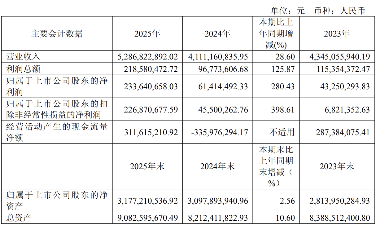 C114讯 4月21日消息(颜翊)昨日,永鼎股份发布2025年年度报告。报告期内,公司实现营业收入52.87亿元,同比增长28.60%;实现归属于上市公司股东净利润2.34亿元,同比增长280.43%,主要因本期对联营企业权益法确认的投资收益较高。