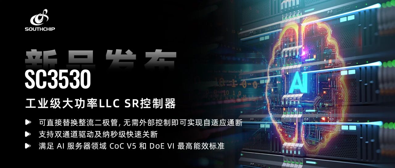 今日,南芯科技(证券代码:688484)宣布推出工业级大功率 LLC SR 控制器 SC3530/SC3531,适用于 AI 服务器电源及大功率工业电源。SC3530/SC3531 性能优越,可直接替换整流二极管,无需外部控制即可实现自适应通断,支持双通道驱动及纳秒级快速关断,满足 AI 服务器领域 CoC V5 和 DoE VI 最高能效标准。这款产品进一步拓宽了南芯科技在工业级大功率电源领域的布局,为市场提供性能出众的国产化选择。