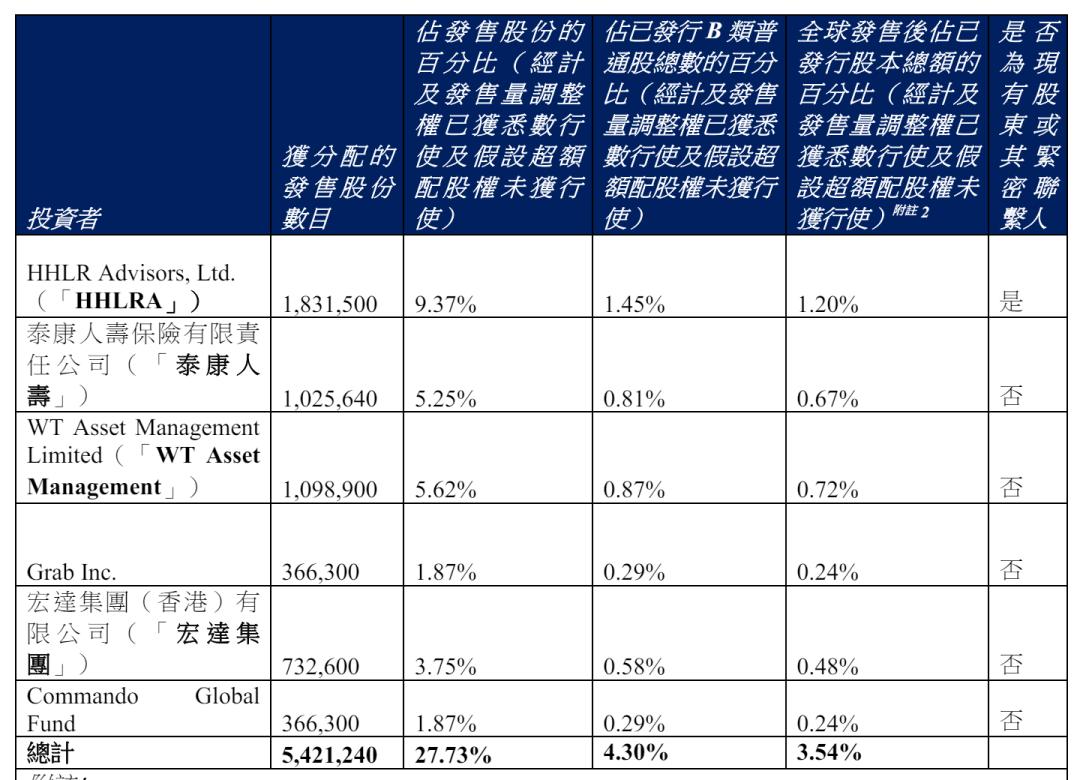 其中,高瓴HHLRA认购5000万美元,泰康人寿认购2800万美元,WT Asset Management认购3000万美元,Grab认购1000万美元,宏达集团认购2000万美元,Commando Global Fund认购1000万美元。