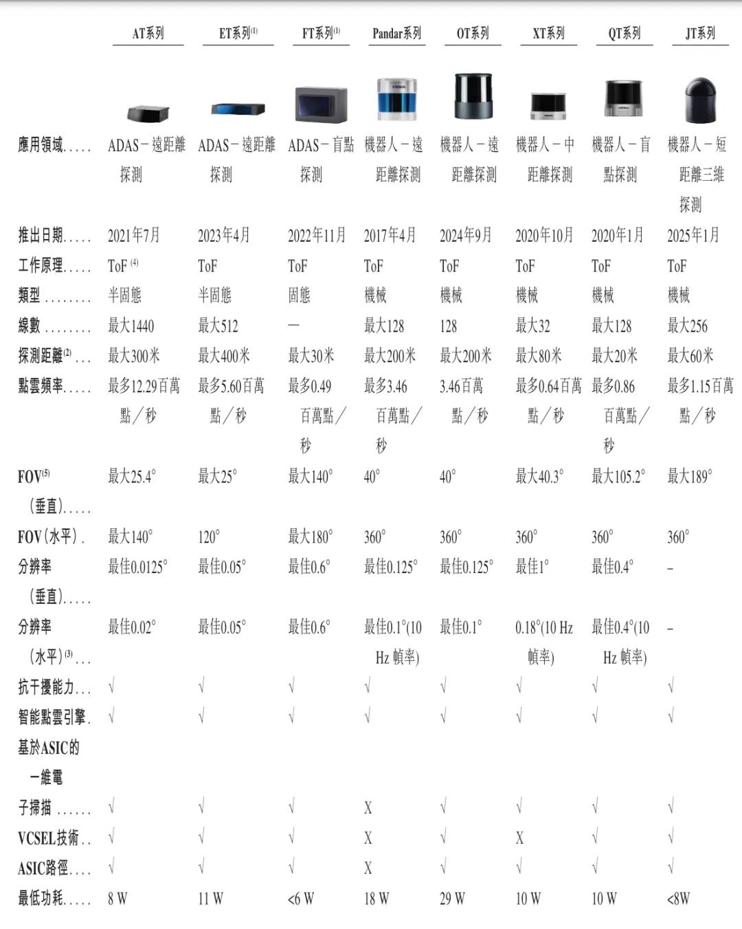 凭借自研芯片路径,禾赛科技产品线包括AT、ET系列和JT系列,这些产品推动了公司的持续增长。