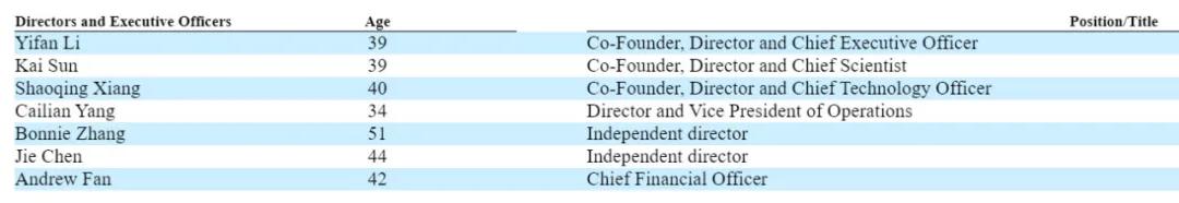 禾赛科技执行董事分别为李一帆博士、孙恺博士、向少卿、杨彩莲女士;独立非执行董事分别为张怿女士、陈劼博士、任佳。