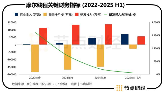 从收入端看,摩尔线程的增长势头可谓迅猛,2024年营业收入同比增长高达257.02%,而2025年仅上半年营收就已超过过去三年的总和。这一爆发式增长主要得益于公司成功的战略转型,将重心从早期低毛利的桌面级显卡转向了高价值的AI智算产品线,抓住了国内AI大模型发展的算力需求风口。