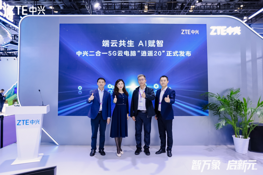 9月25日,在第33届中国国际信息通信展览会上,中兴通讯发布了新一代二合一5G云电脑——“逍遥20”,更硬核,更轻薄,更AI。中国移动繁星智算副总经理汪春信、中国电信天翼终端公司泛智能终端事业部副总经理王东、中国联通华盛公司终端销售部副总经理耿旭、中兴通讯副总裁华新海出席了本次发布活动。
