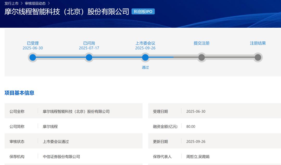摩尔线程智能科技(北京)股份有限公司(简称:“摩尔线程”)今日IPO过会,准备在科创板上市。