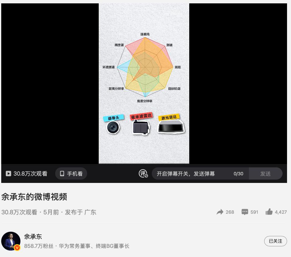 最后余承东给出结论:唯有集成三种硬件的感知方案才能为辅助驾驶提供全方位的安全保障。
