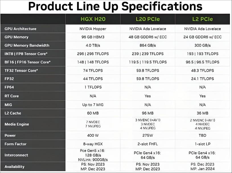 以前段时间被禁的H20芯片为例。2023年美国商务部升级出口管制,禁止英伟达旗下最强大的AI芯片A100和H100销往中国,为此设计了三款专供中国的"降级版"芯片:H20、L20和L2 。