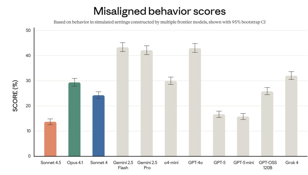 要知道,如果不加以审查,AI 自主生成的代码一旦投入生产环境,往往会带来各种潜在风险。对此,Anthropic 表示,Claude Sonnet 4.5 不仅是当前最强的模型,也是他们迄今推出的 最“对齐”的前沿模型 。