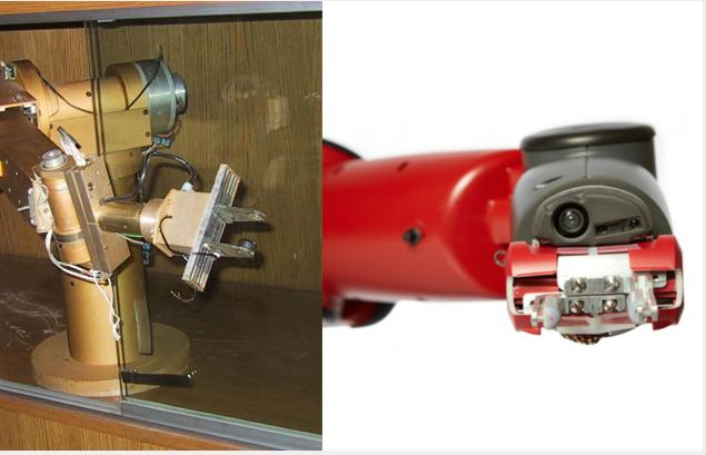 两者唯一的区别在于:右侧更现代的抓取器内置了摄像头,可通过视觉伺服系统对准目标物体——而在70年代,受限于技术,无法在定价合理的产品中实现这一功能,因为当时的计算能力不足以支撑。
