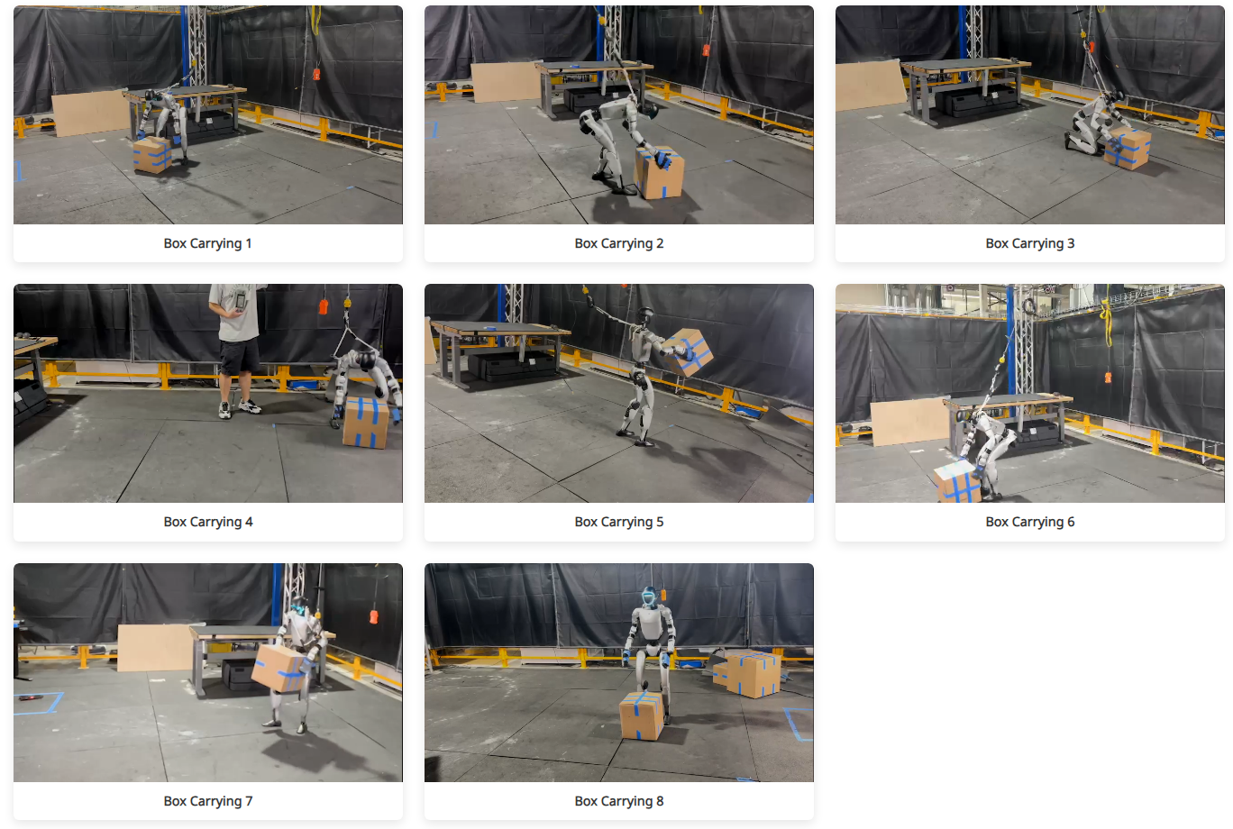 此外,OmniRetarget 能够让人形机器人以多种风格进行运动操作,比如 8 种搬箱子的动作。