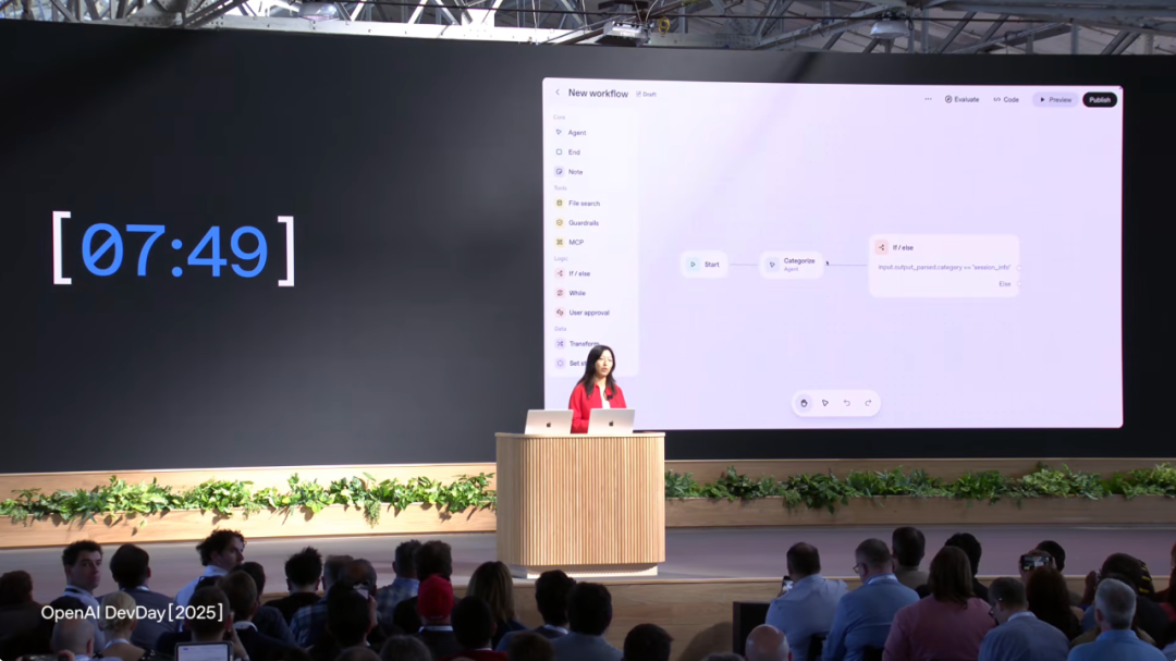 仅用时 7 分 11 秒,OpenAI 员工就为 Dev Day 网站从零搭建了 AI 助手。通过可视化方式添加分类 Agent 、路由节点、Sessions Agent 处理会议日程、Dev Day Agent 处理通用查询,还加了 PII 防护。