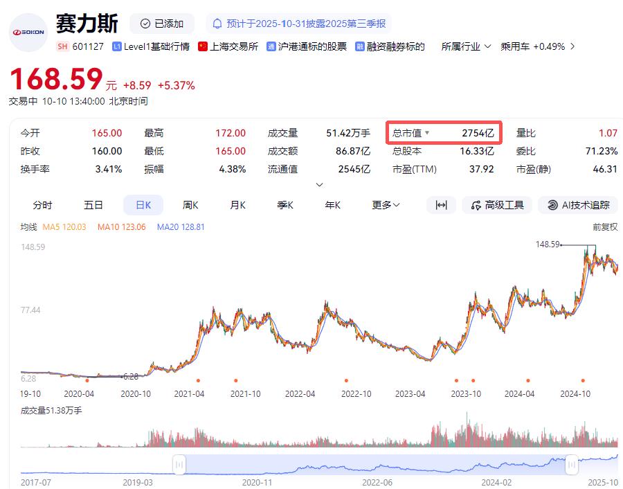 在国内车企中,赛力斯已位列市值第二,仅次于比亚迪。
