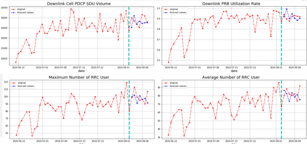 支持多种关键指标预测,如PDCP层上下行用户面流量、RRC连接用户数、上下行RPB利用率等;