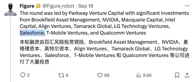 而Figure最新一轮十亿美元融资,Salesforce也参与了。