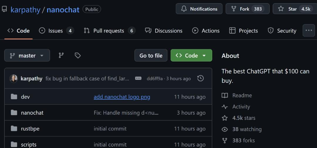 GitHub 链接:https://github.com/karpathy/nanochat