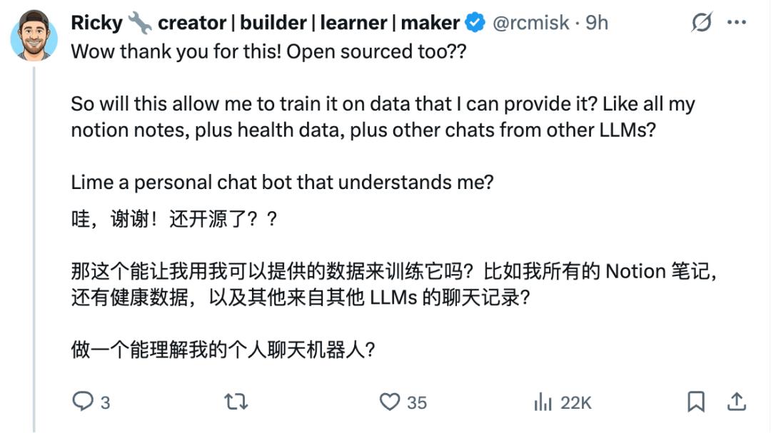 这样看来,构建一个具备聊天功能的大模型是如此的简单且低成本,并且有了 Karpathy 成熟的开源代码支持,那我们创建一个属于自己的个人化的模型来辅助工作可行吗?