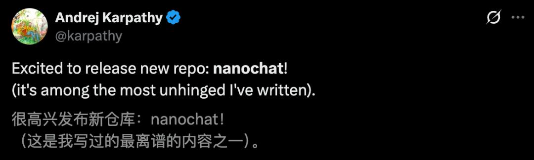 AI传奇人物、前特斯拉AI总监Karpathy宣布发布全新项目nanochat!