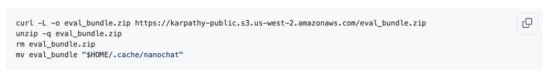 下载、解压该评估包,并将评估包目录放置到基础目录~/.cache/nanochat/eval_bundle下: