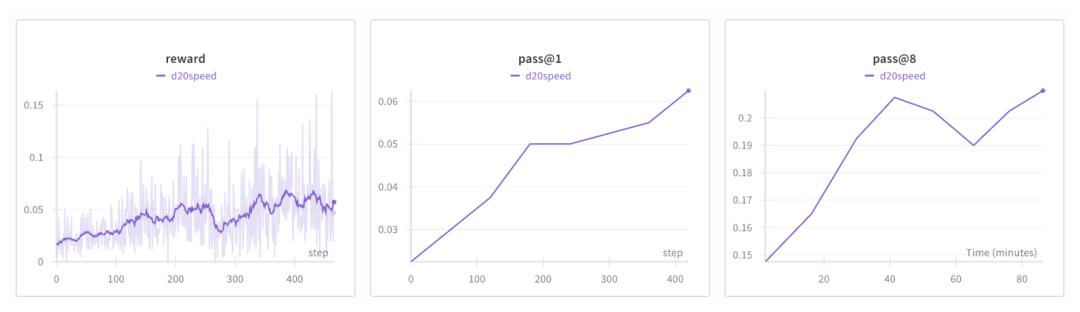 所以我们可以运行RL(/GRPO)脚本,通过交替进行采样和训练的简单强化学习循环,直接在答案上进行性能攀升: