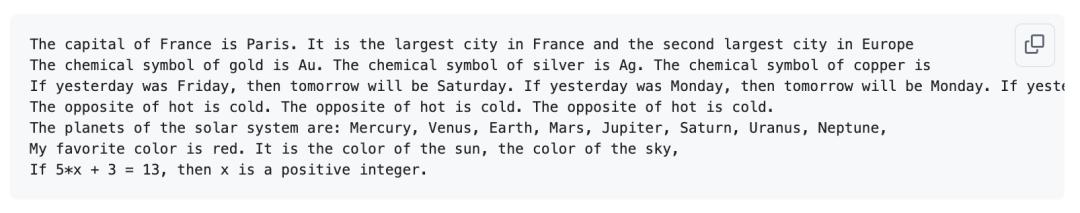所以,模型知道巴黎是法国的首都、Au代表金、星期六在星期五之后、“冷”是“热”的反义词,甚至还知道太阳系的行星。