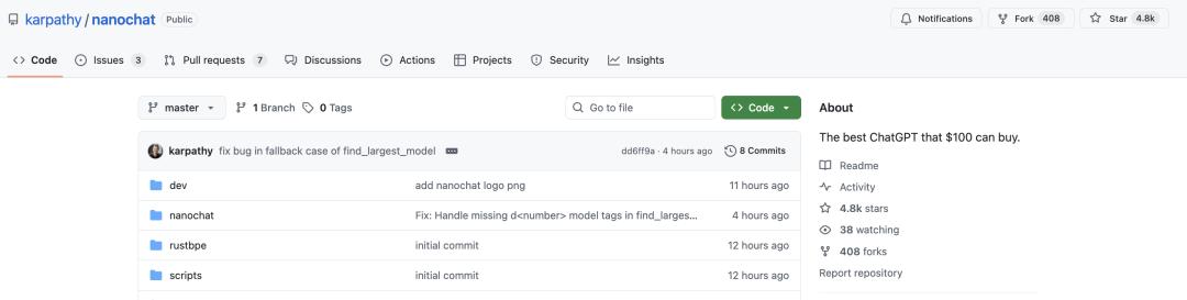 GitHub repo:https://github.com/karpathy/nanochat