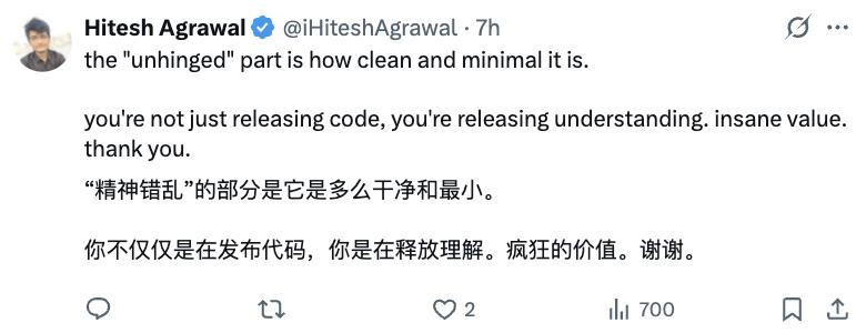 我确实尝试过用Claude或Codex之类的Agent来帮忙,但效果非常糟糕,几乎毫无帮助。可能是因为这个repo的结构偏离了它们训练数据的分布,所以它们根本“对不上号”。