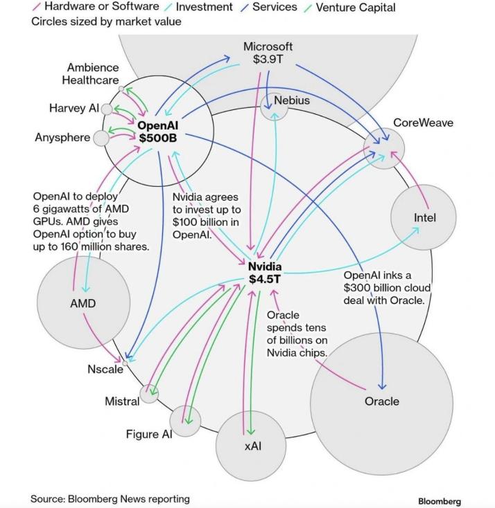 在2025年短短几个月内,OpenAI先后主导了与英伟达(NVIDIA)、AMD、Oracle、博通等巨头的一系列数额巨大的订单,并计划启动一系列大规模AI基础建设项目。10月13日,OpenAI又与博通达成了部署AI芯片的订单。