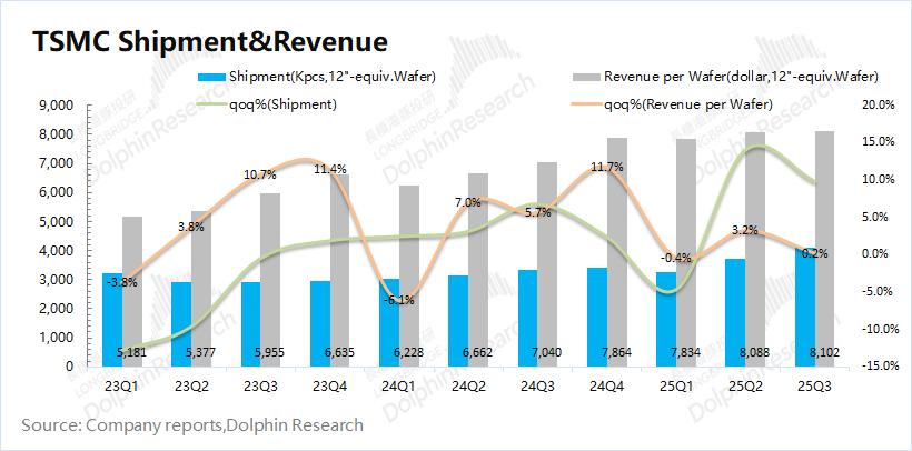 海豚君从量和价的维度,来观察台积电本季度收入增长的主要推动力: