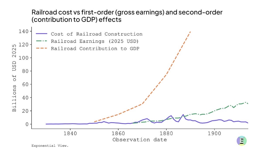 这种情况会让财务状况变得更糟还是更好,目前还是个未知数。悲观的看法是,一箱熟透的香蕉比同等价值的巴西坚果价值更低,因为它必须被迅速消耗掉。但乐观的看法很有趣:更短的折旧周期可能会迫使新进投资者考虑财务约束问题。在铁路热时期,长达数十年的资产寿命掩盖了许多商业模式的弱点;公司可以在破产前苟延残喘多年。而在AI领域,缺陷可能会迅速暴露,迫使企业要么快速适应,要么早点失败。