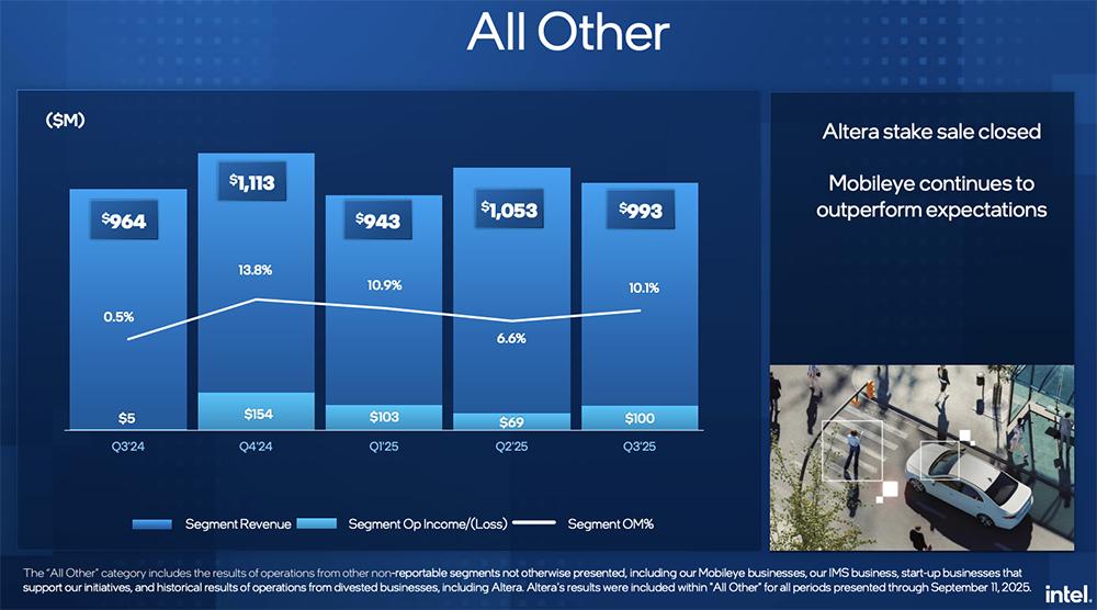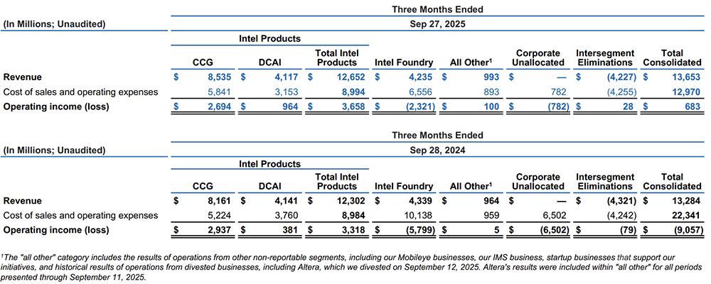 自2025年9月12日起,在完成出售51%已发行在外普通股的交易后,原全资子公司Altera已从英特尔合并财务报表中分离。截至2025年9月11日的所有期间,Altera的财务运营业绩均已纳入英特尔合并财务业绩及其“All Other”业务部门类别。