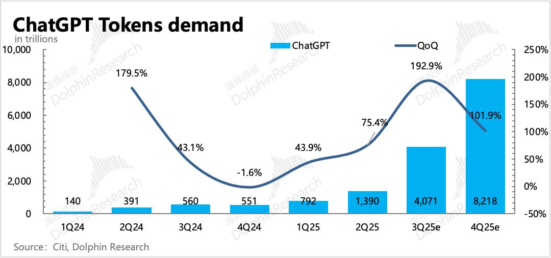 虽然市场认为博通的不确定性最高,毕竟合作细节披露得最少。但海豚君认为,产业链中CSP与GPU芯片巨头之间利益博弈,比如英伟达直接绕过CSP与下游客户OpenAI签直供合同,等于是要把CSP大厂们排除出利益链条外,这必然会加速CSP自研ASIC芯片的进程。