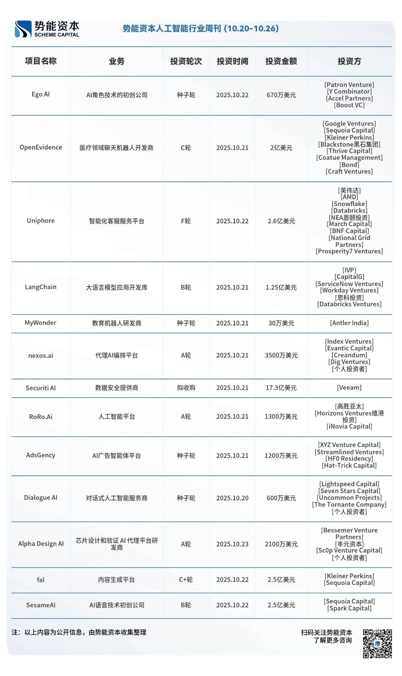 本周LiblibAI1.3亿美元的B轮融资, 由红杉中国、CMC 资本及一战略投资方联合领投,老股东顺为资本、源码资本、明势创投、渶策资本也进行了超额增持,成为国内最大单笔 AI 应用投资。Manifold AI完成亿级人民币的天使轮融资,投资方为同创伟业,锦秋基金,英诺天使基金。乐聚机器人完成近15亿人民币的Pre-IPO轮。