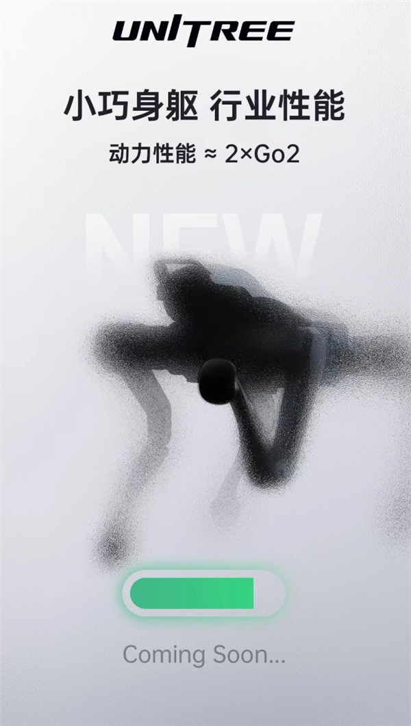 海报中的产品虽然模糊化处理,但从轮廓可以清晰辨认,这款新品将是四足机器人,动力性能约为Go2两倍。