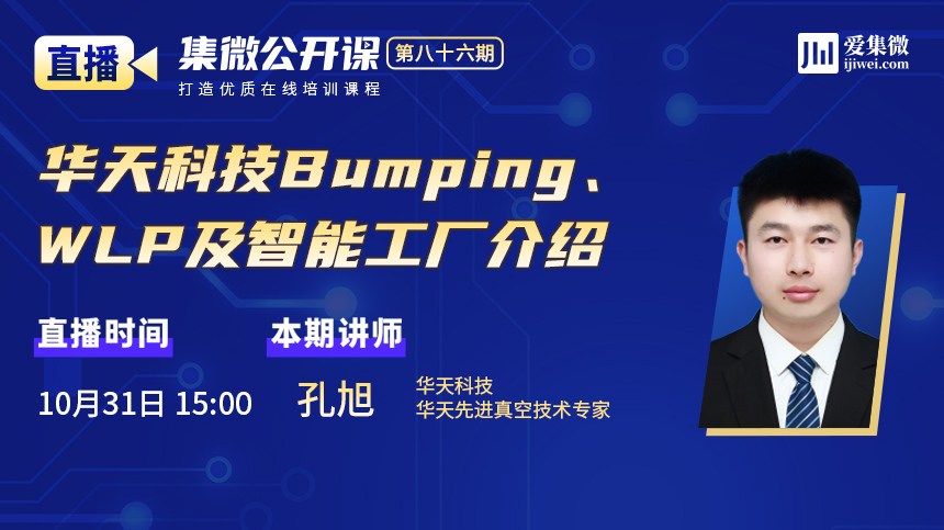 为了加强对先进封装及智能制造的了解,10月31日,集微网将举办第86期“集微公开课”活动,特邀华天科技先进真空技术专家孔旭就“华天科技Bumping、WLP及智能工厂介绍”主题作分享,带您深入了解半导体先进封装工艺,解析其背后的技术细节与应用趋势。