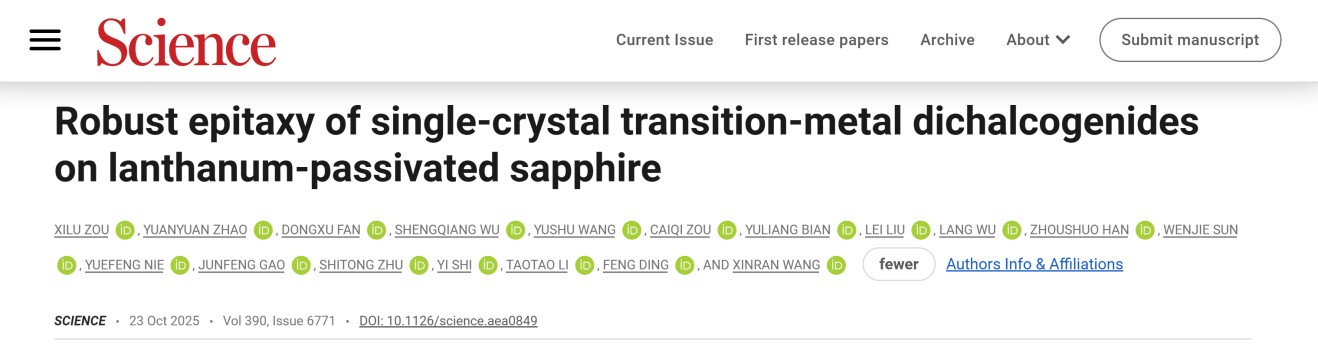 1、极钼芯科技携手南京大学荣登《Science》!突破二维半导体单晶制备关键技术