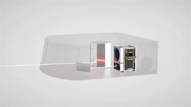 它的工作原理讲起来并不复杂,搭载激光发射与接收模块的整个光机结构以 360° 持续不断的旋转,完成对周围环境的全景扫描。