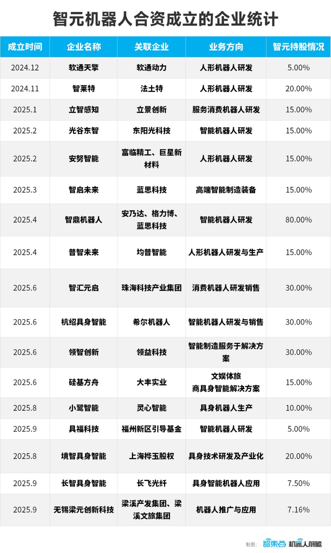 此外,智元还通过合资设立至少17家新公司,借力上市公司或地方产业集团,切入产能、渠道与场景。